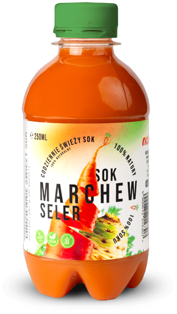 Sok marchwiowy jest bogaty w naturalne witaminy: wit. A, wit. C, wit. E, wit. K, wit. B1, wit. B2, wit. B3, wit. B6, kwas foliowy, potas, K+, wapń, Ca2+ magnez Mg2+ żelazo Fe3+ cynk Zn2+ fosfor PO4- miedź Cu 2+